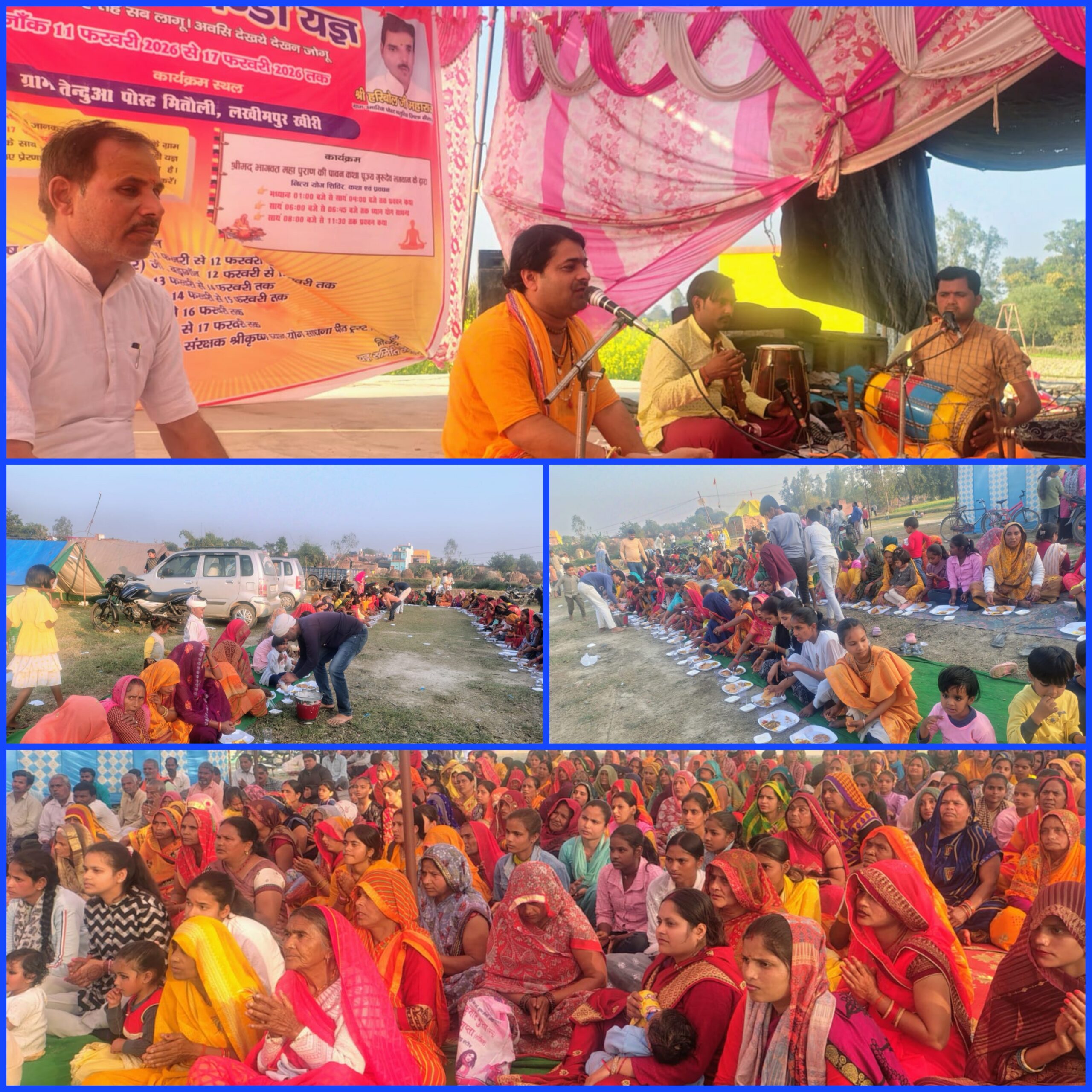 लखीमपुर खीरी। मितौली क्षेत्र के ग्राम तेंदुआ में सप्तम सात दिवसीय श्रीचंडी महायज्ञ एवं संतसम्मेलन यज्ञ की पूर्णाहुति के उपरांत कन्या भोज विशाल भंडारे के साथ यज्ञ सम्पन्न हुई। श्रीकृष्ण ध्यान योग साधना पीठ ट्रस्ट द्वारा योग साधना,कुशल संचालन मानस मर्मज्ञ हरि बोल महाराज के दिशा निर्देशन में अपराह्न बेला रात्रि बेला में दूरदराज से पधारे मानस मर्मज्ञ कथावाचक पुरुषोत्तम गोस्वामी जी, सीतापुर नैमिषधाम से पधारे महाभारत महारथी आदितेंद्र तिवारी शिखर जी, मानस वक्ता परमविद्वान कौशल जी, मानस वक्ता परमविद्वान प्रभाकर शुक्ला जी, परम विद्वान मानस मर्मज्ञ राम जी तिवारी रामायणी आदि विद्वानों की अमृतमय वाणी से राम कथा भगवत चर्चा, प्रवचन,भजन कीर्तन का स्रोता ने रसपान किया । पूर्णाहुति के उपरांत कन्या भोज विशाल भंडारे का आयोजन किया गया। इस अवसर पर काफी संख्या में ग्रामवासी व क्षेत्रवासी माताएं बहने भक्त गण मौजूद रहे है।