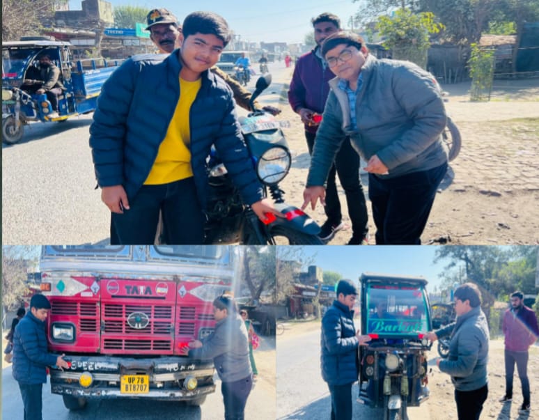 समाजसेवी डा० ख़ान ने बेटे के साथ मिलकर गाड़ियों में लगाया रेडियम